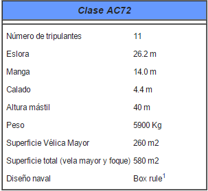 - Esta embarcación fue construida para competir en la regata de la Copa América 2013 y la Copa Louis Vuitton 2013